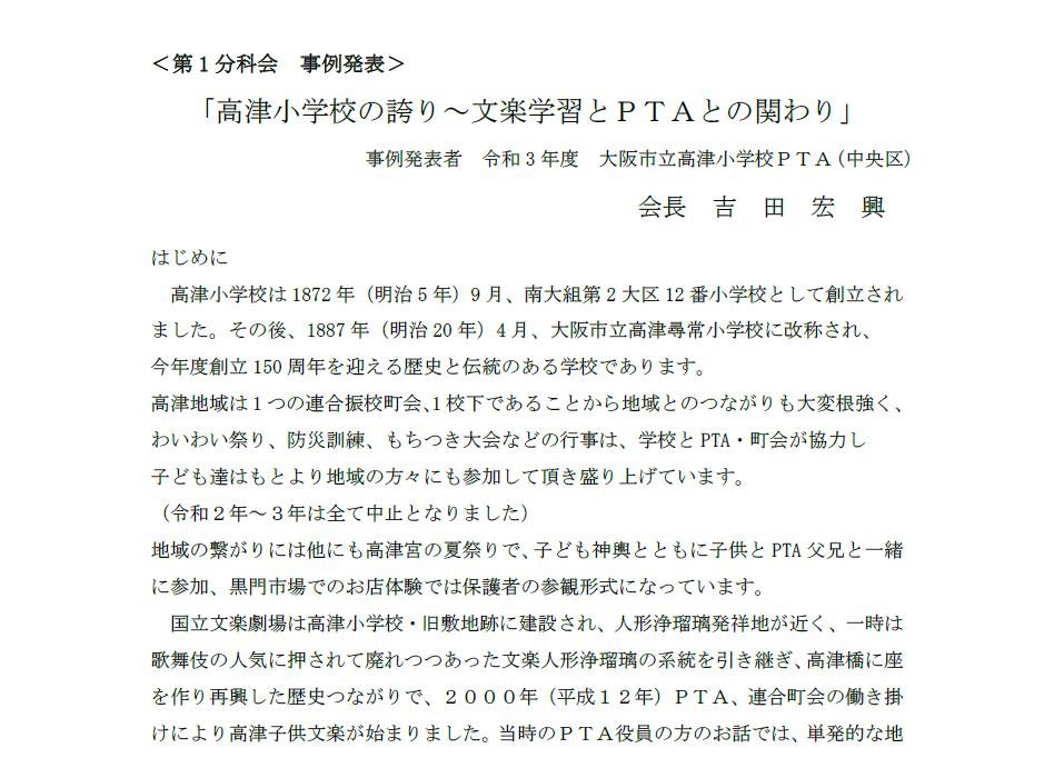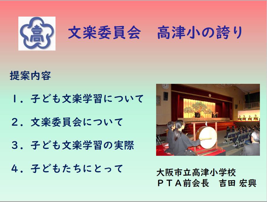 「高津小学校の誇り~文楽学習とPTAとの関わり~」