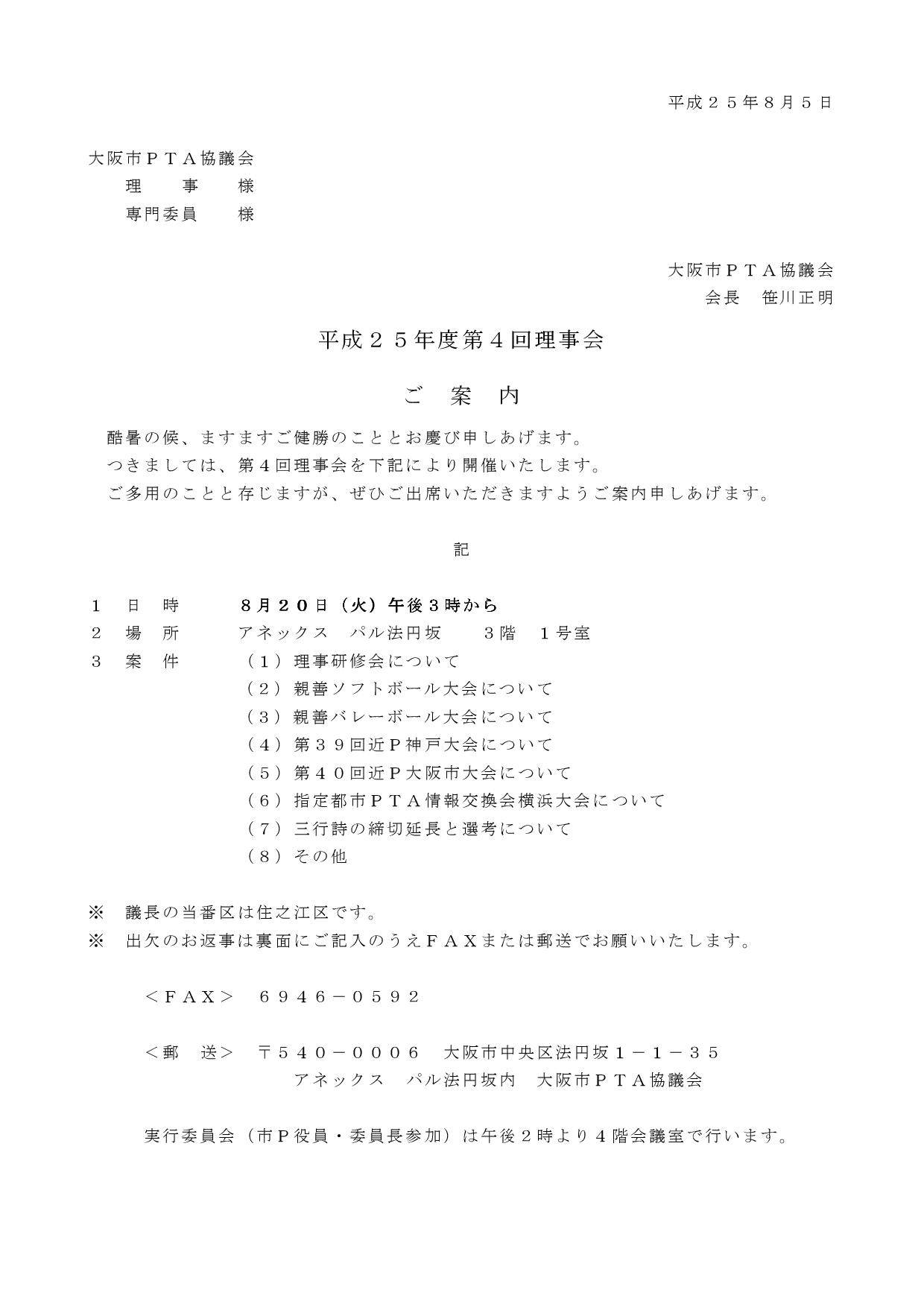 大阪市PTA協議会 お知らせ 2013年8月7日