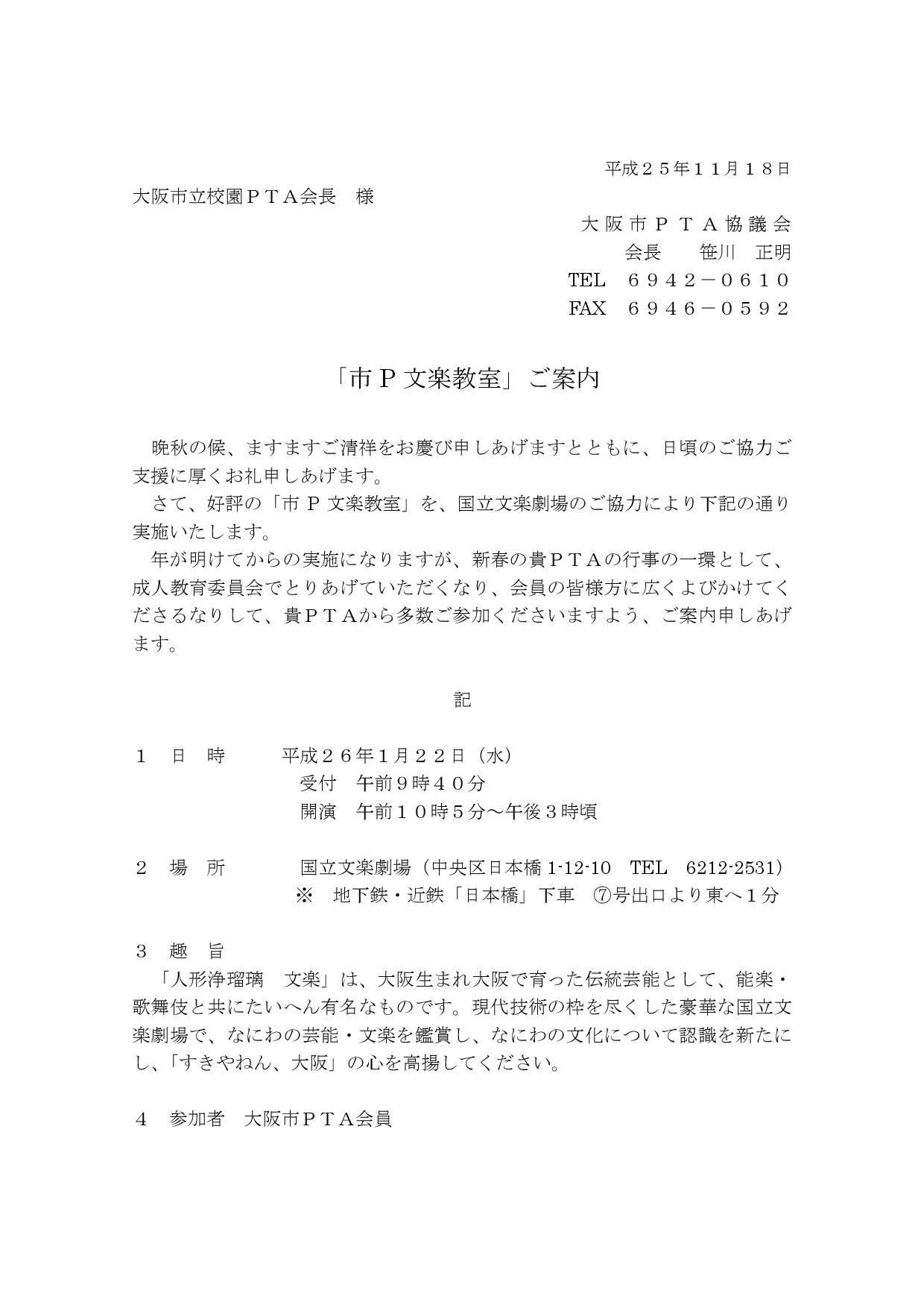 大阪市PTA協議会 お知らせ 2013年12月13日