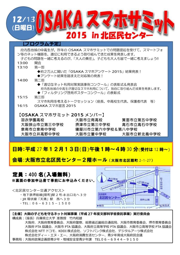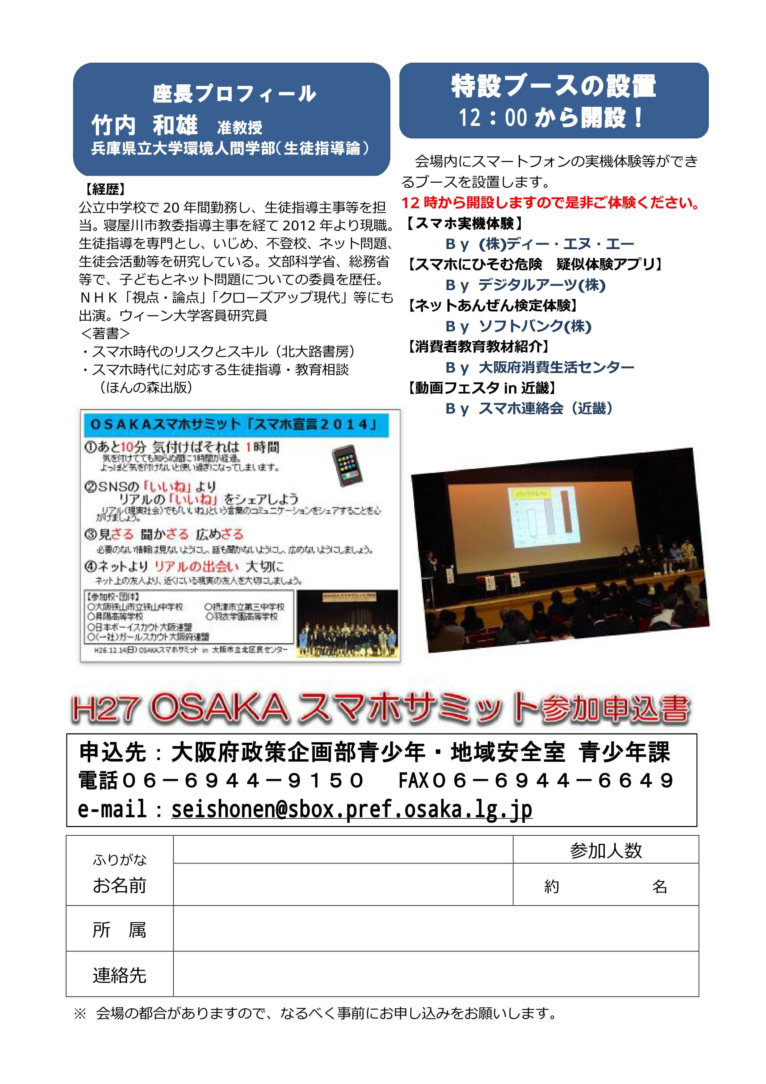 府内各地域の中高生が、昨年の OSAKA スマホサミットでの問題提起を受けて、スマートフォン等のネット機器を、適切に利用できるよう取り組んできた成果を発表します。