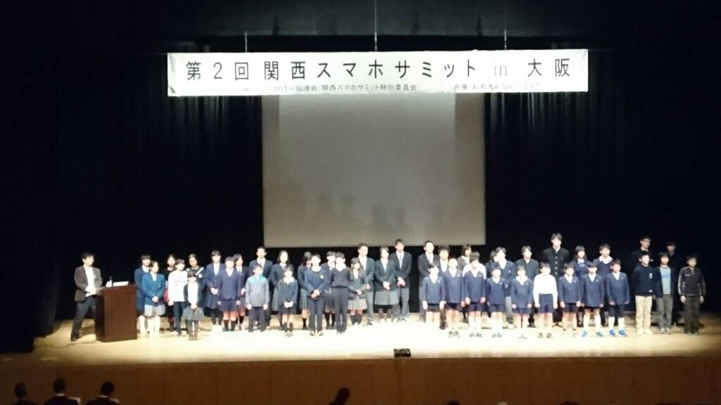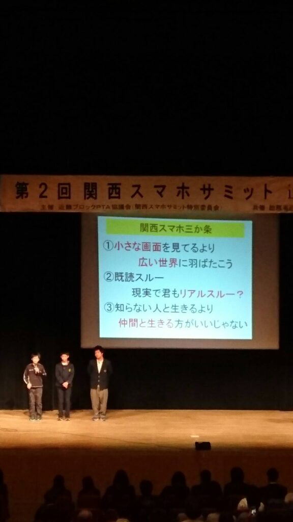 近畿ブロックPTA協議会[2府4県3政令都市(滋賀県、京都府、京都市、大阪府、大阪市、 兵庫県、神戸市、奈良県、和歌山県)の9PTA協議会による]の各協議会からたくさんの子供たちが参加してくれました。子どもたちのスマホに対する率直な考えも聞け、とても有意義で楽しい時間になりました。