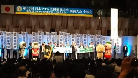 大阪市PTA協議会 お知らせ 2018年8月29日 日本PTA全国研究大会に参加しました 8月24日・25日の2日間、新潟にて行われました、日本PTA全国研究大会に、大阪市PTA協議会から約50名が参加いたしました。2日間に渡り、各種講演、式典が催されました。 全体会会場のアオーレ長岡です。主催にあたられた新潟のPTAの皆さまお疲れ様でした! 来年の開催地は兵庫県です。平成31年(2019年)8月23日・24日の開催です。