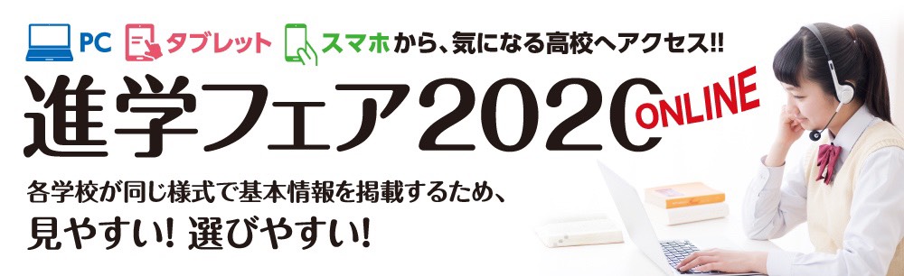 毎年7月初旬に開催されている進学フェア。今年度はコロナウィルス感染症拡大の影響により中止となりましたが、その代わりに「進学フェア2020online」と題して特設サイトがオープンします。