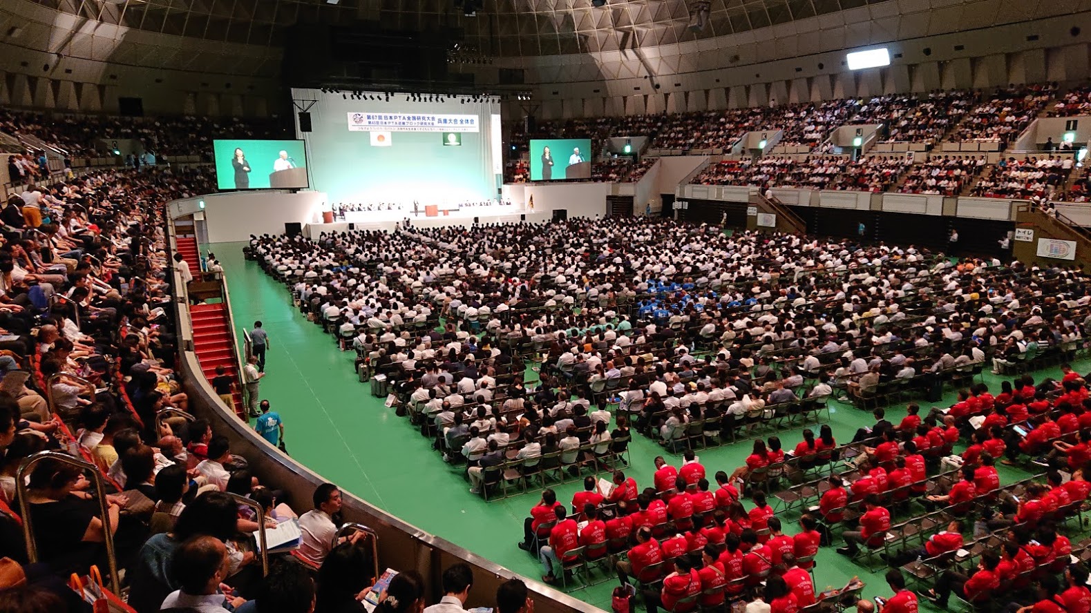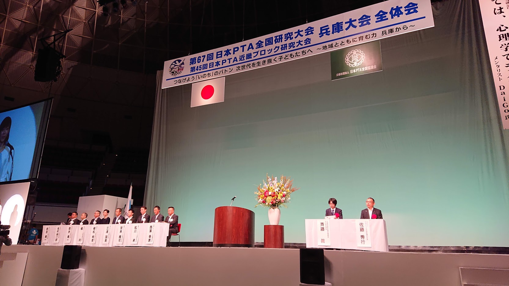 大阪市PTA協議会 お知らせ 2019年9月17日 日本PTA全国研究大会 兵庫大会 に参加しました。 令和元年の日本PTA全国研究大会は8月23日(金)24日(土)、兵庫県にて開催されました。 大阪市PTA協議会では、23日に三木市・淡路市での分科会、24日に神戸市での全体会に参加し、全国の仲間と交流を深めてまいりました。 来年度は富山県での開催となります。 ポートアイランドのワールド記念ホールでの全体会の様子です。