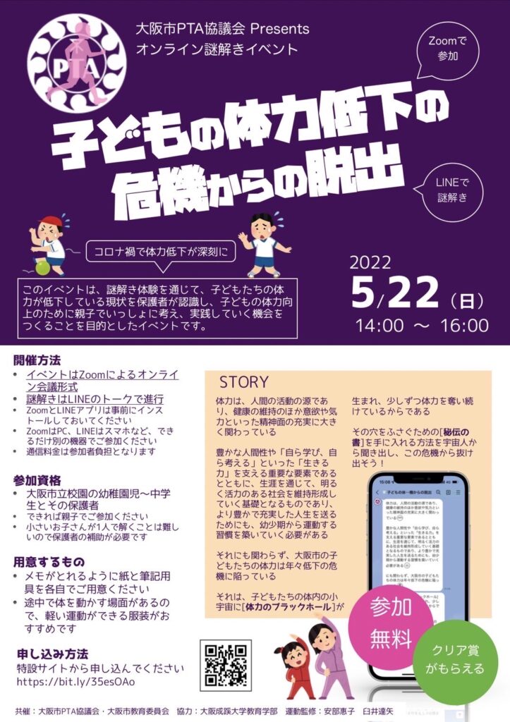 「子どもの体力低下の危機からの脱出」Zoom&LINE謎解きイベント フォローアップコンテンツ